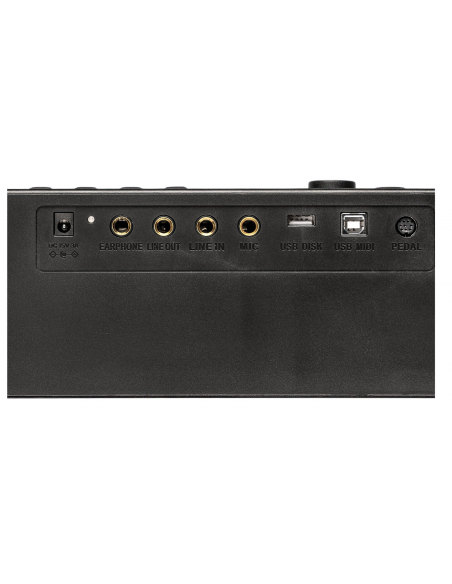 Además, el QP100 ofrece una conectividad completa que incluye salidas de audio, entradas de línea y de micrófono, un puerto USB/MIDI que lo convierte en un controlador MIDI capaz y la posibilidad de reproducir archivos MP3 desde una unidad flash USB.
