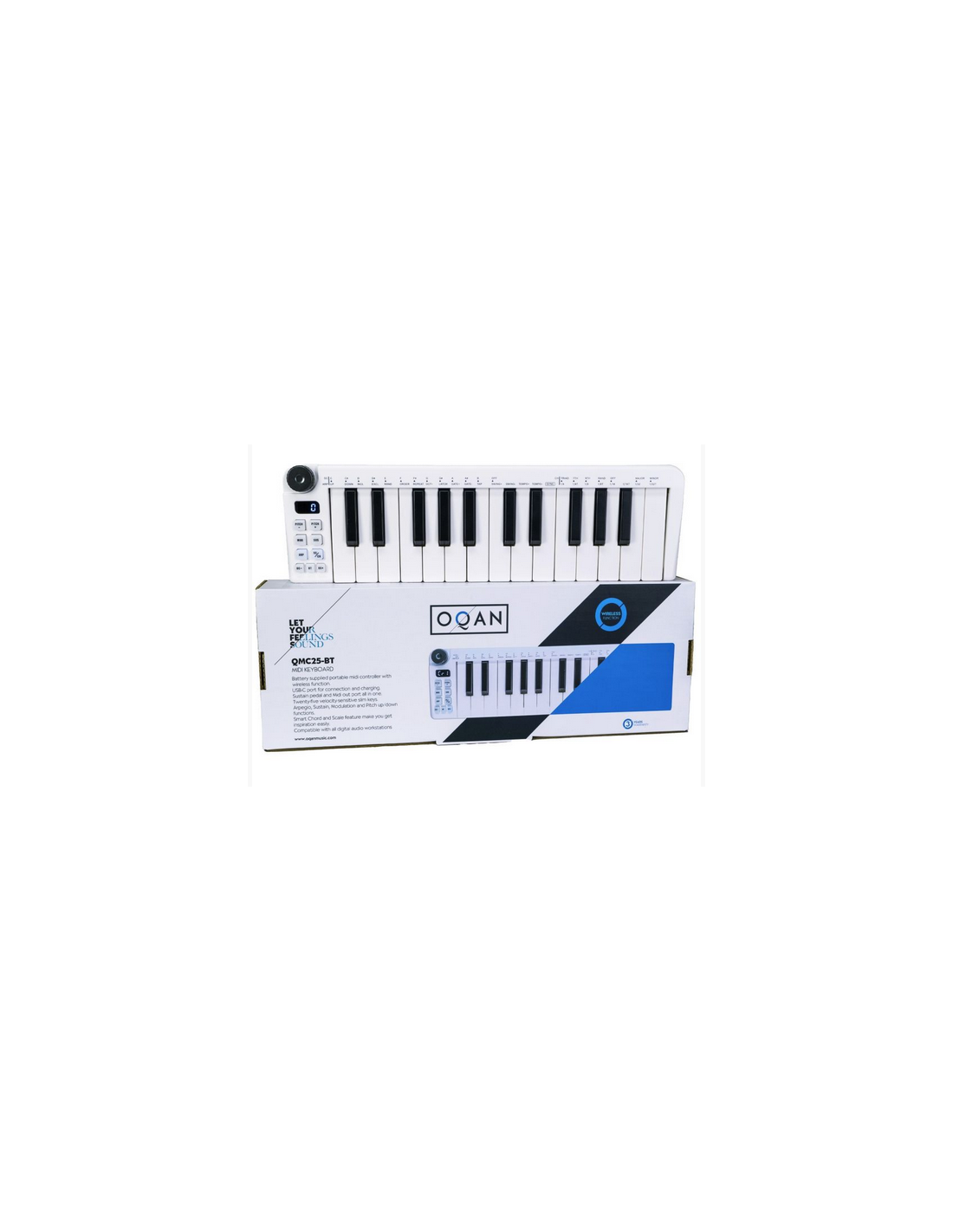 El QMC25-BT es un teclado controlador MIDI Bluetooth con 25 teclas y funciones avanzadas como la conexión inalámbrica Bluetooth MIDI, batería recargable, modos Smart Chord y Smart Scale y puerto para pedal de sustain o conexión MIDI. Es un controlador ideal para usar con apps de producción musical para móviles o tablets, o con los DAWs más populares para ordenador.