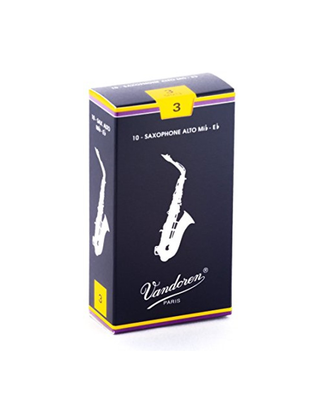 Caja de 10 Cañas para Saxo Alto marca Vandoren modelo Tradicional, con dureza de 3.